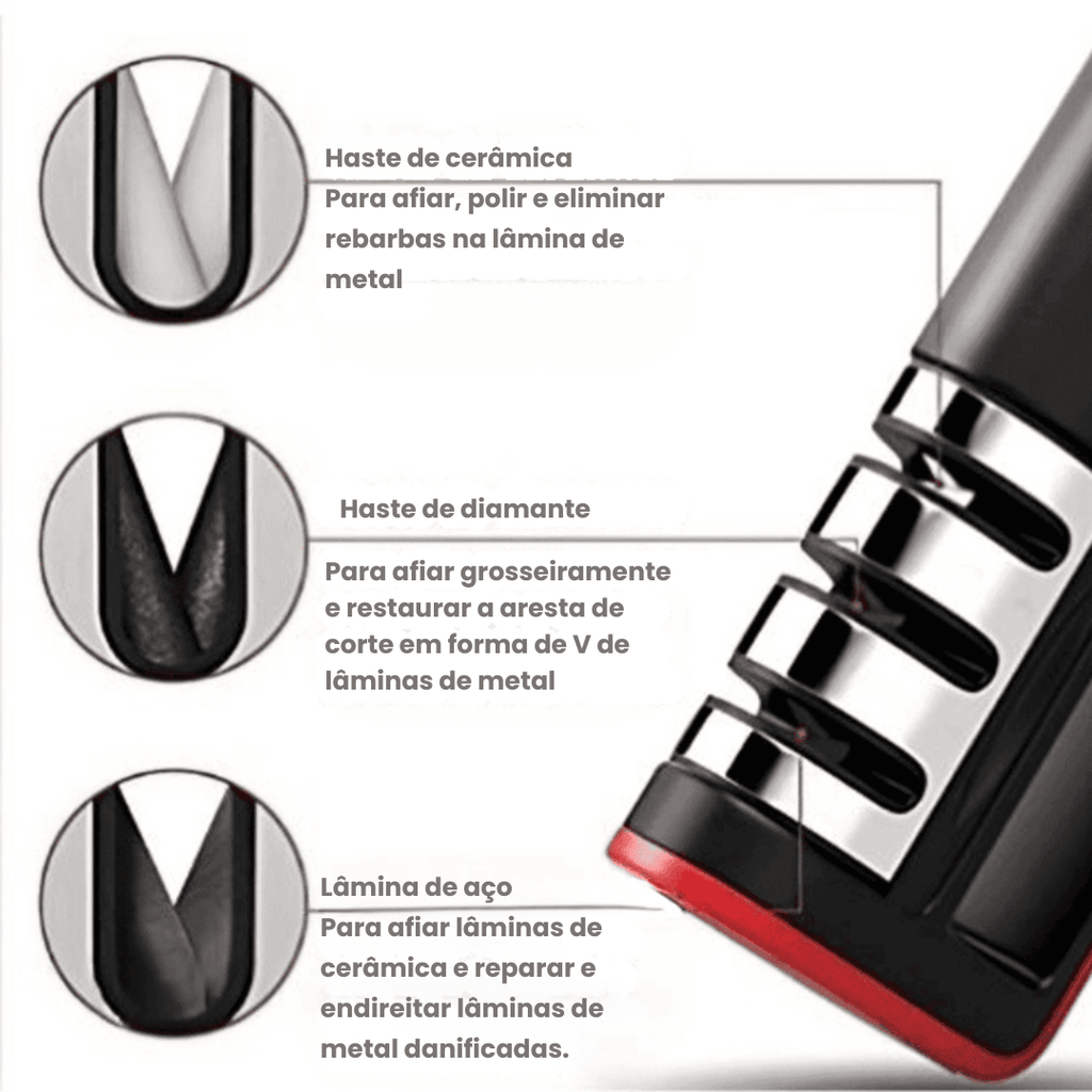 Amolador de Facas e Tesouras Profissional 3 em 1 – Corte Preciso Sem Esforço