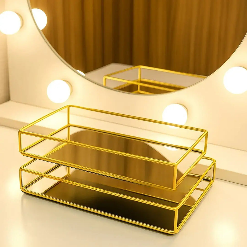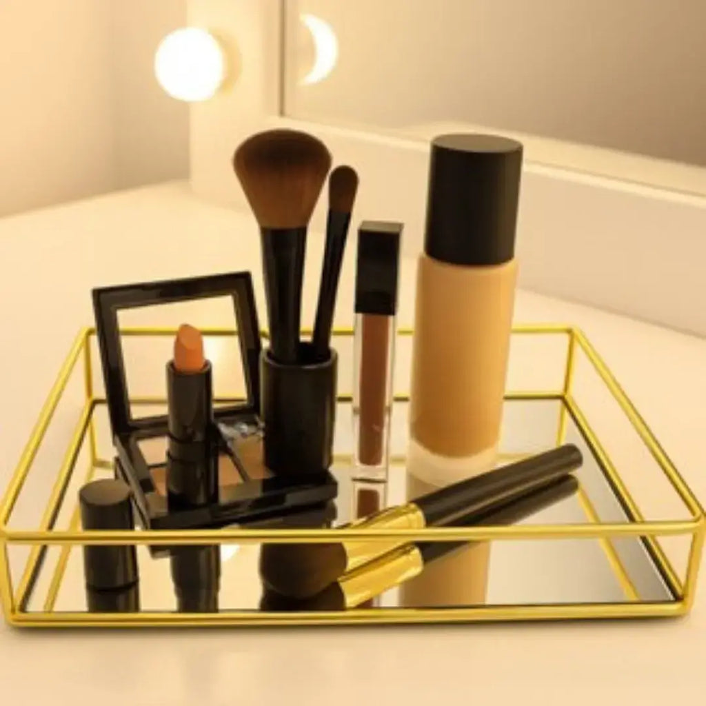- Estilo Refinado: O espelho integrado reflete a beleza dos objetos que você exibe, adicionando brilho e sofisticação ao ambiente. - Versatilidade: Use para organizar perfumes, joias, velas ou pequenos itens com praticidade e estilo. - Decoração que Encanta: Eleva a decoração de qualquer espaço, funcionando como um detalhe glamouroso em móveis e prateleiras.