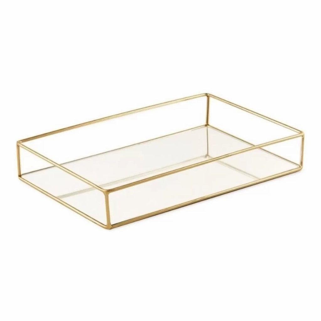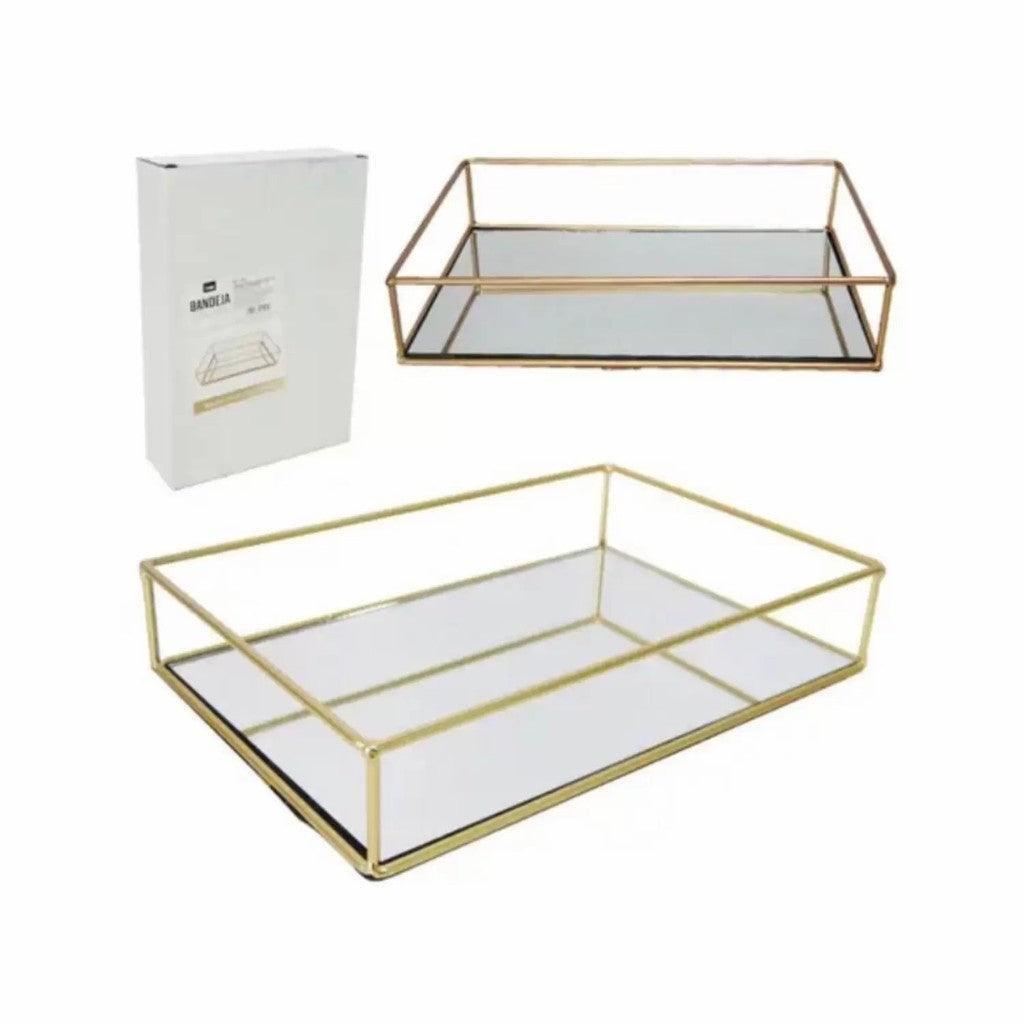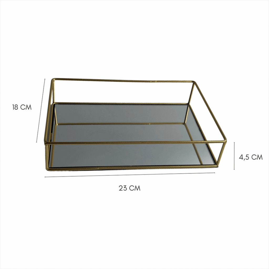 - Tamanho: 20cm x 12cm x 3,5cm — compacto e ideal para diversos usos. - Material: Composição de metal (105g) e vidro (126g), garantindo leveza e durabilidade. - Conteúdo: 1 bandeja decorativa pronta para transformar seu ambiente.