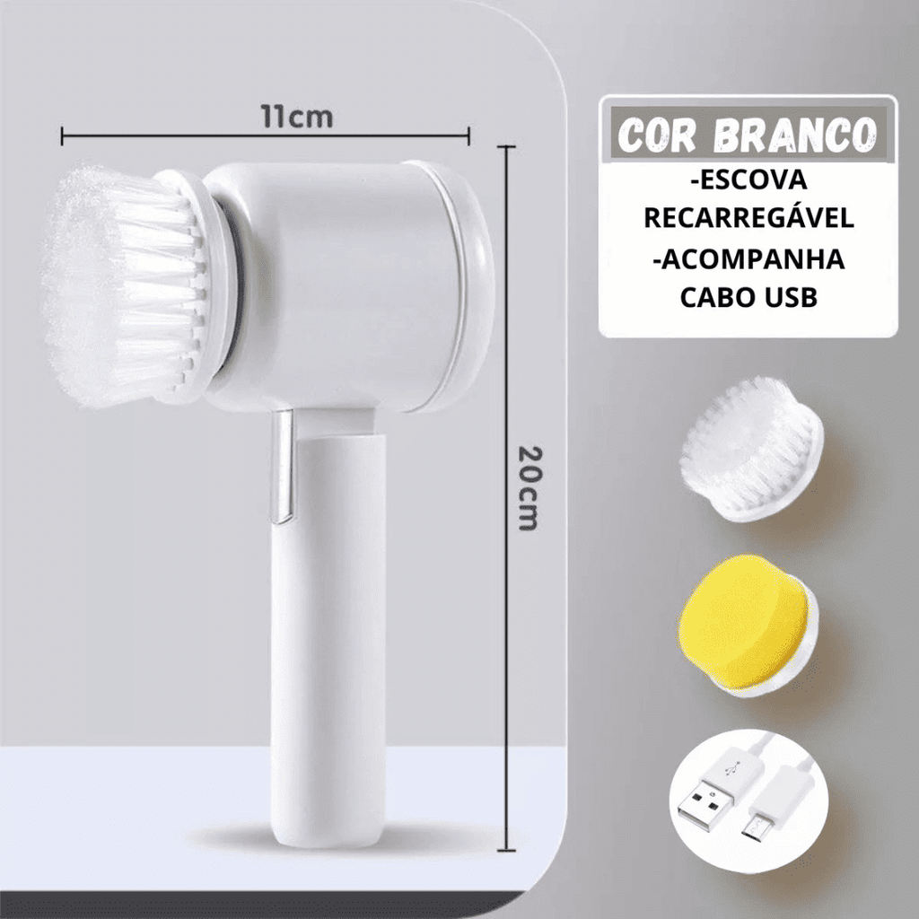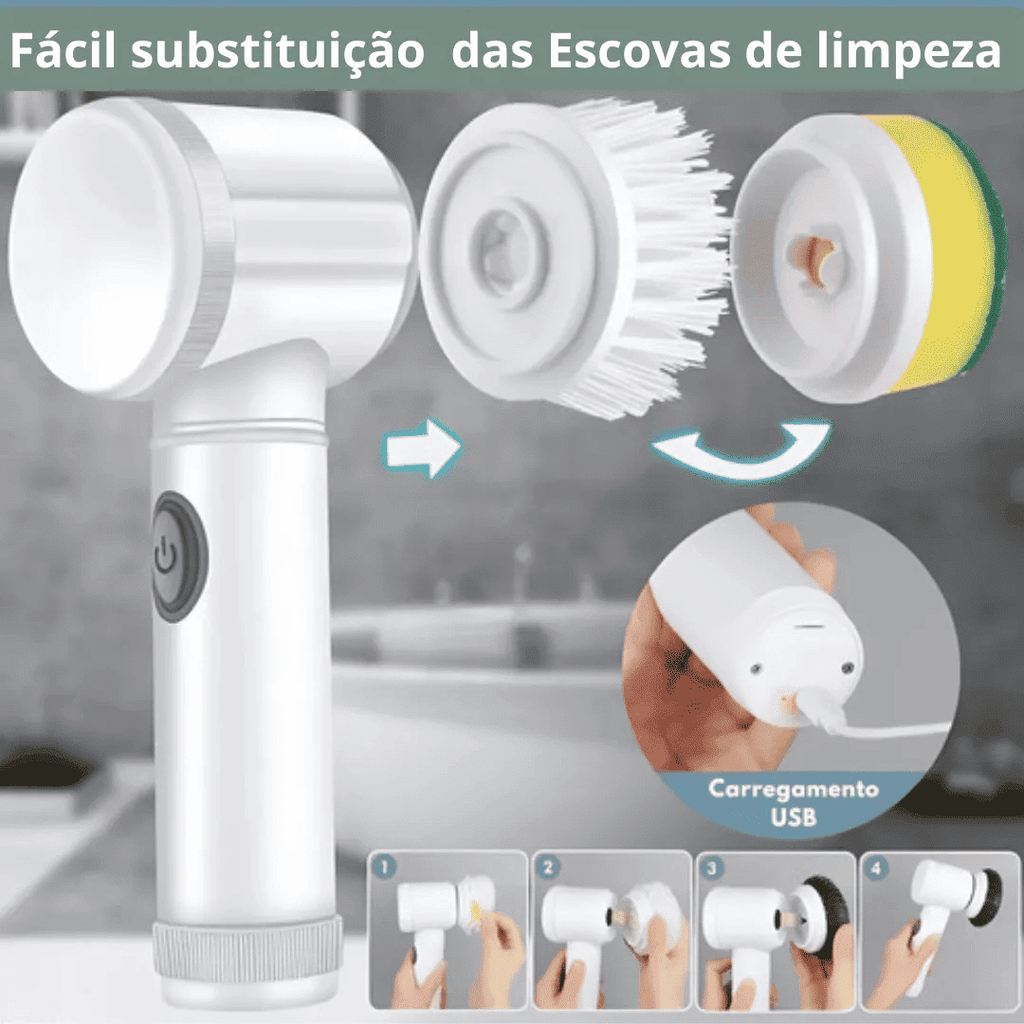 Escova Elétrica Multiuso 5 em 1 para Limpeza 360° – Potência e Agilidade na Palma da Sua Mão