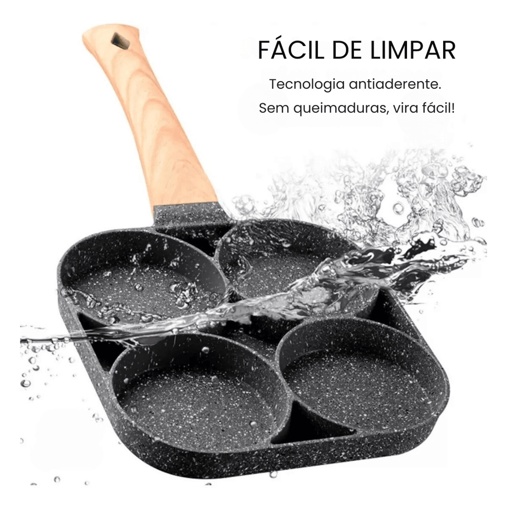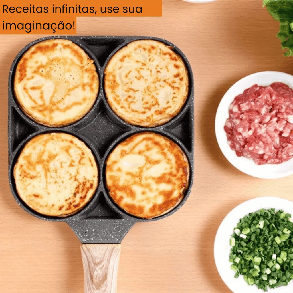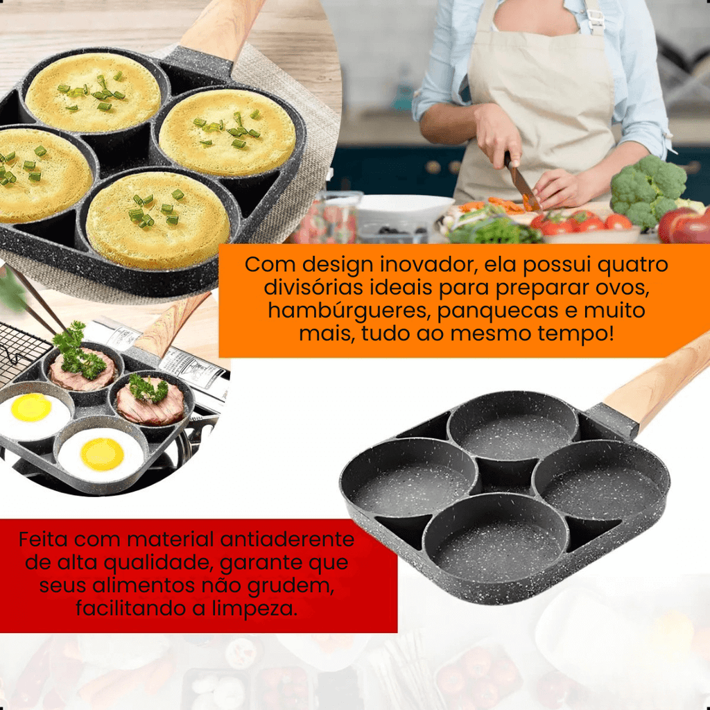 Com a Frigideira Antiaderente 4 em 1, você prepara ovos, hambúrgueres e legumes simultaneamente – sem misturar sabores e sem sujar várias panelas.