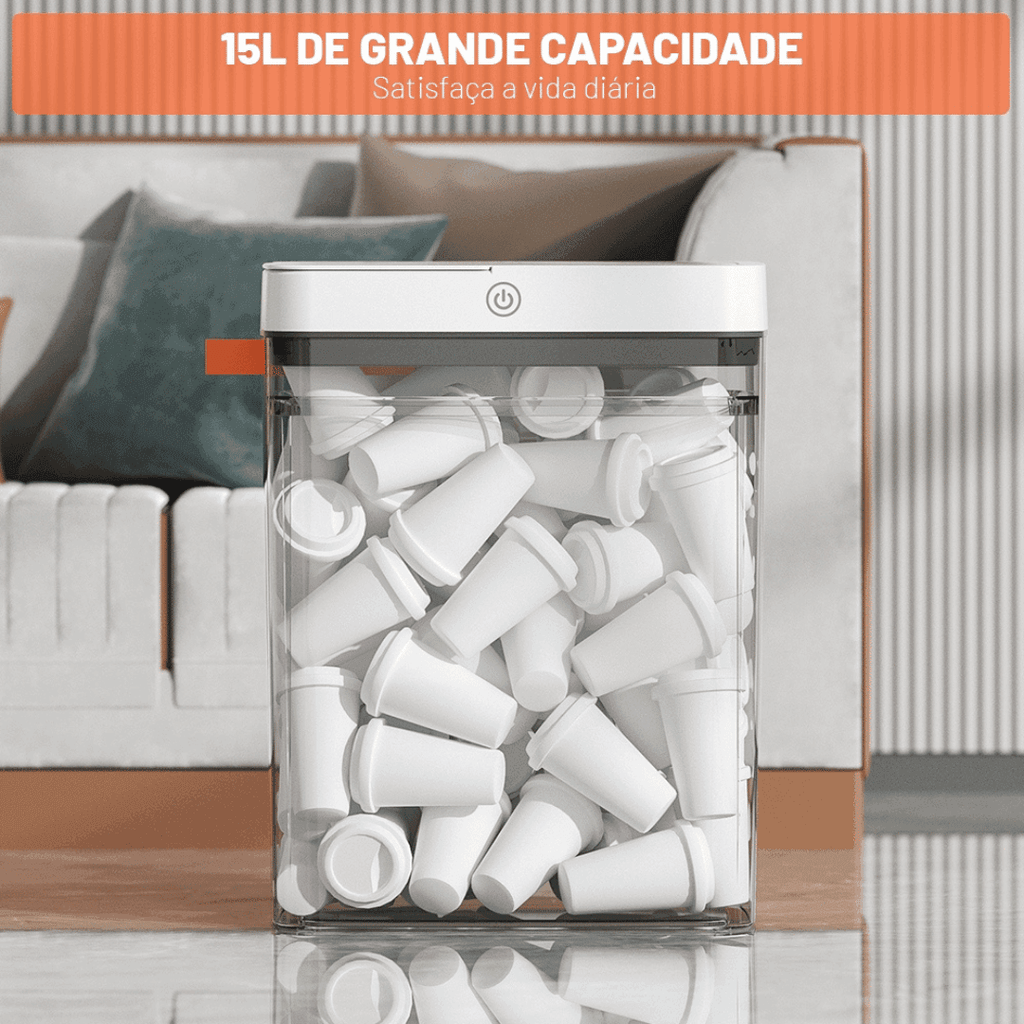 Abertura Sem Toque : Sensor infravermelho detecta movimentos a até 20 cm de distância, abrindo automaticamente a tampa para descartar sem contato.