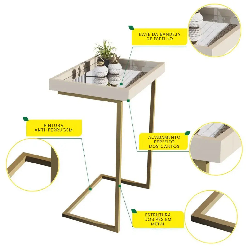Está procurando um móvel compacto, bonito e útil para compor sua decoração? A Mesa de Apoio para Sofá com Bandeja Espelhada é a peça coringa que une design moderno, praticidade e um toque de elegância.