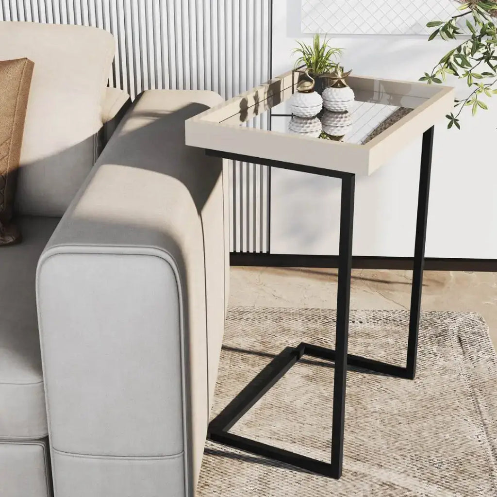 Mesa de Apoio para Sofá com Bandeja Espelhada – Estilo, Funcionalidade e Sofisticação em um só móvel!