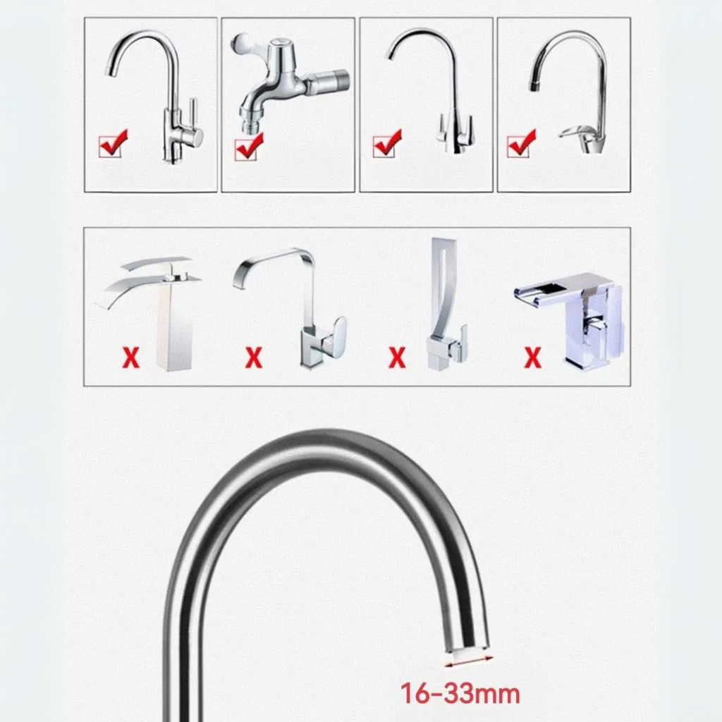 Instalação Fácil e Rápida Sem necessidade de ferramentas. Basta inserir diretamente na torneira circular. Compatível com diâmetros de 16 a 19 mm.