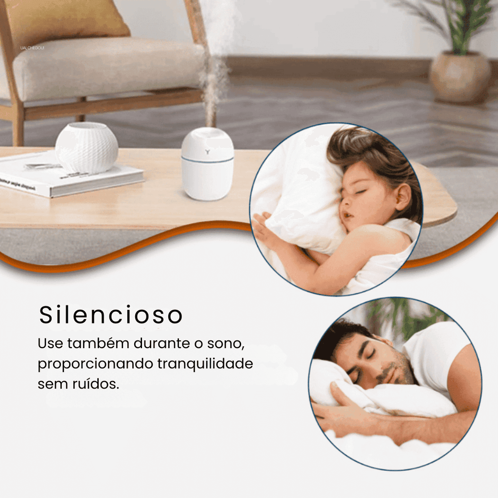Ar seco, pele ressecada e garganta irritada? Esse mini umidificador é a solução prática para melhorar a ar do ambiente em casa, no trabalho ou em viagens . Silencioso, elegante e eficaz — ideal para quem valoriza conforto e bem-estar.