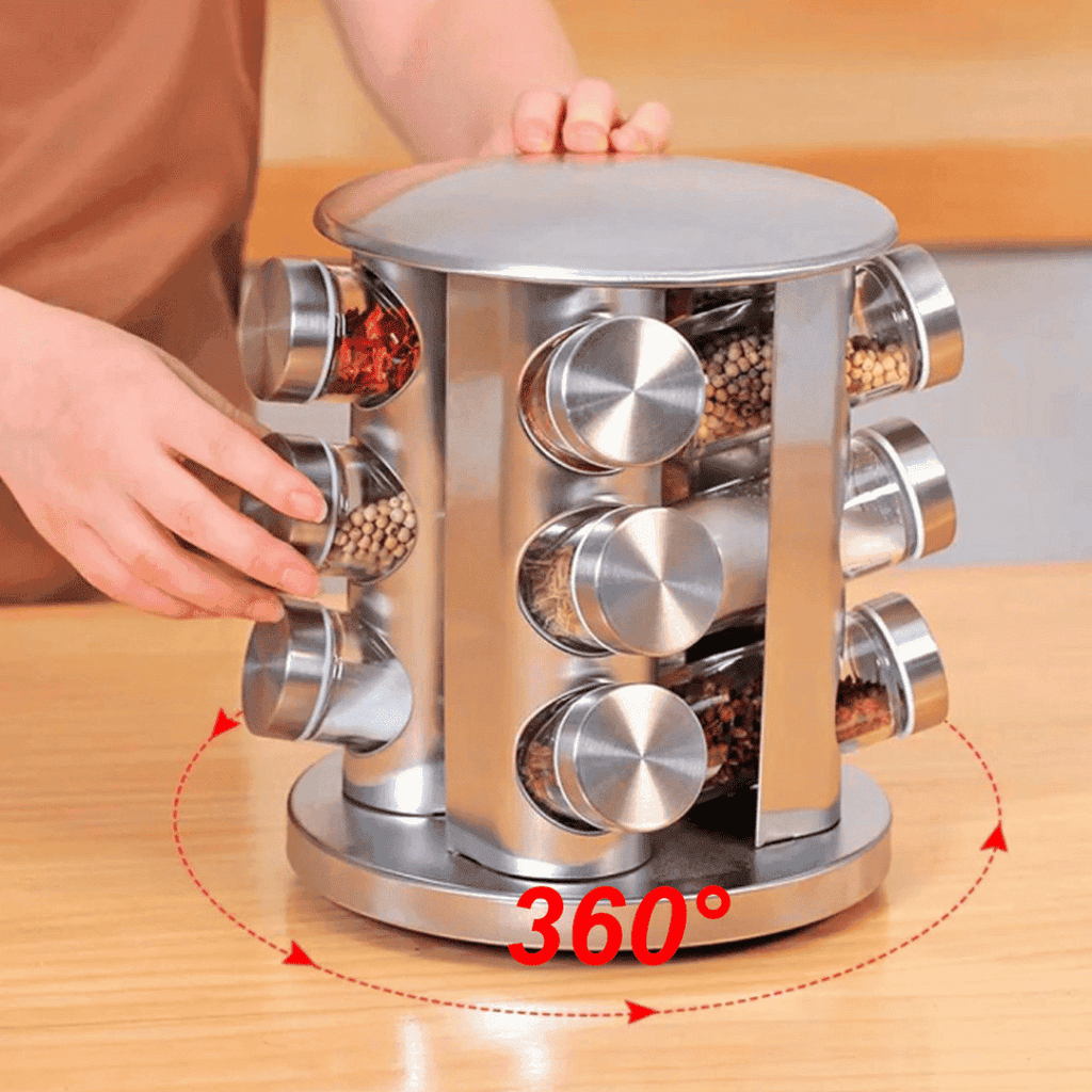 Base Giratória: Encontre qualquer tempero com facilidade.