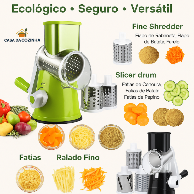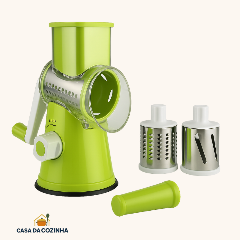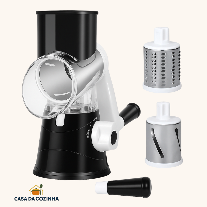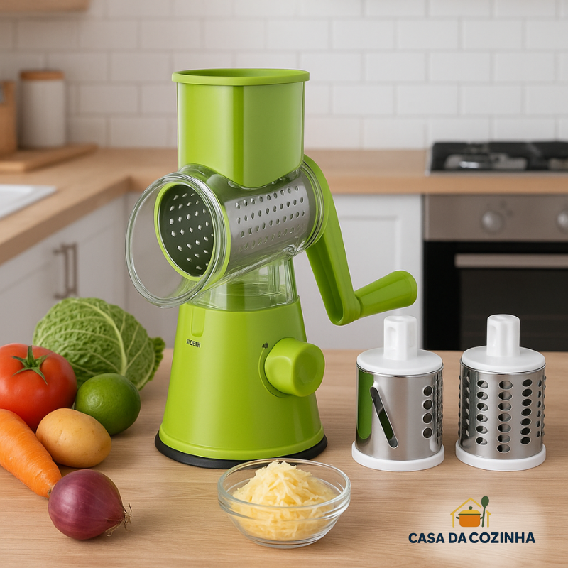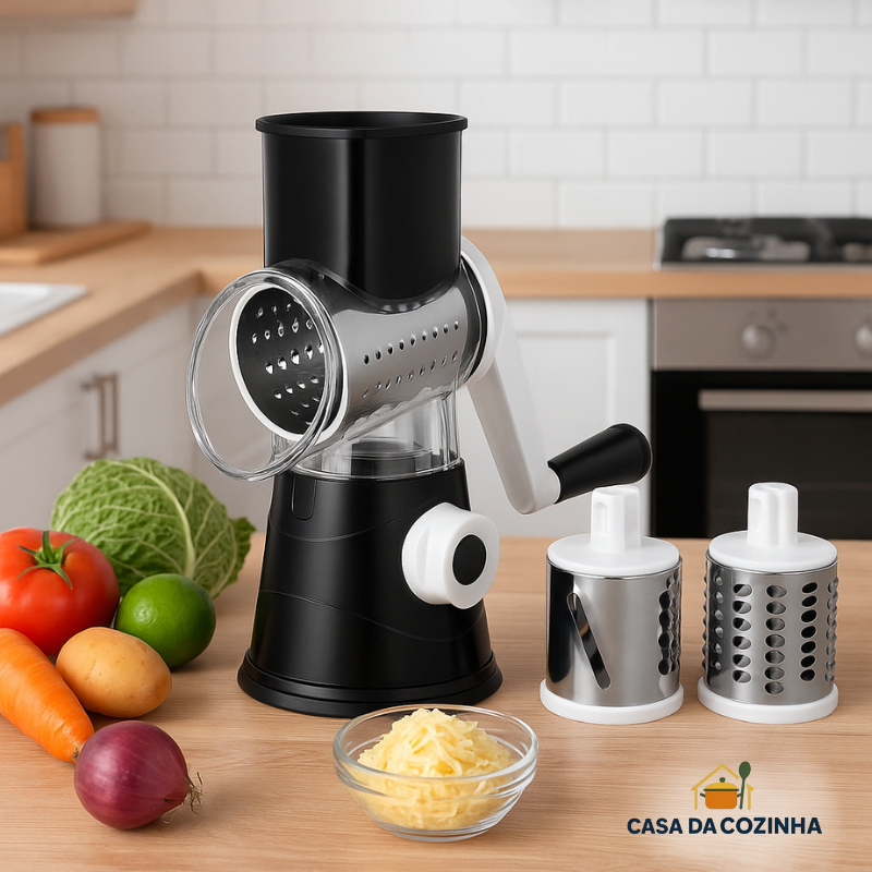 Chega de perder tempo com facas e utensílios perigosos! O Ralador Manual 3 em 1 é perfeito para quem busca praticidade, segurança e eficiência na cozinha. Com 3 lâminas intercambiáveis, você pode ralar, fatiar e triturar seus alimentos de forma rápida e sem esforço.