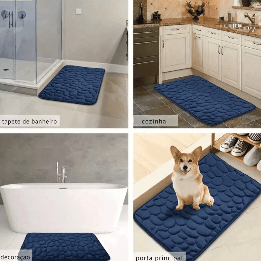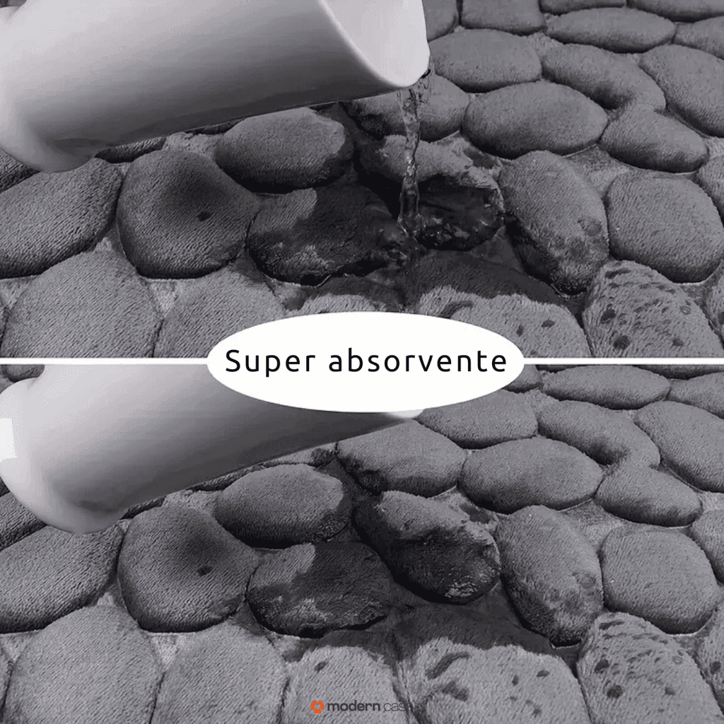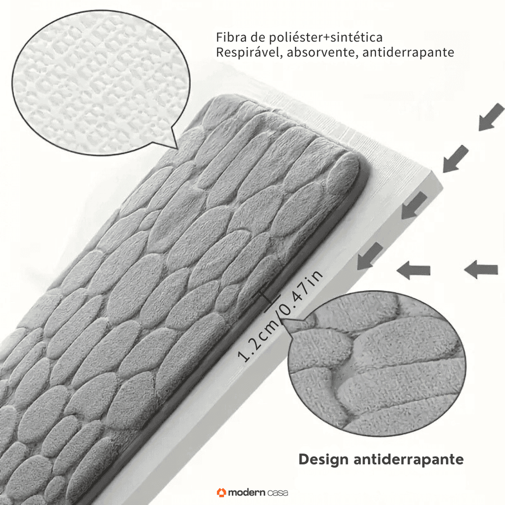 Revestimento: Sua estrutura absorve a água ao sair do banho e possui fibras que permitem a secagem rápida do tapete